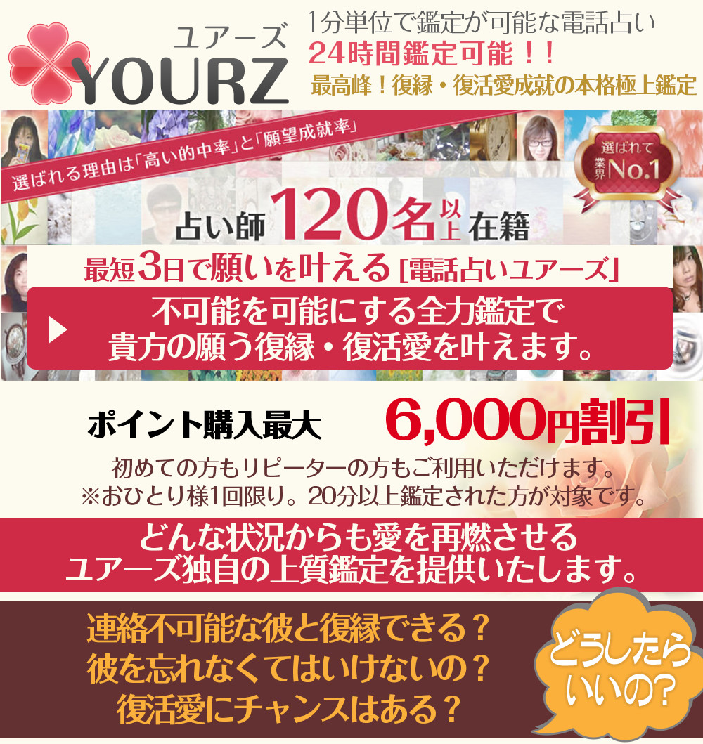 - ユアーズのサービスはお客様が登録を行い電話やメールで占いサービスを行う総合占いサービスです。